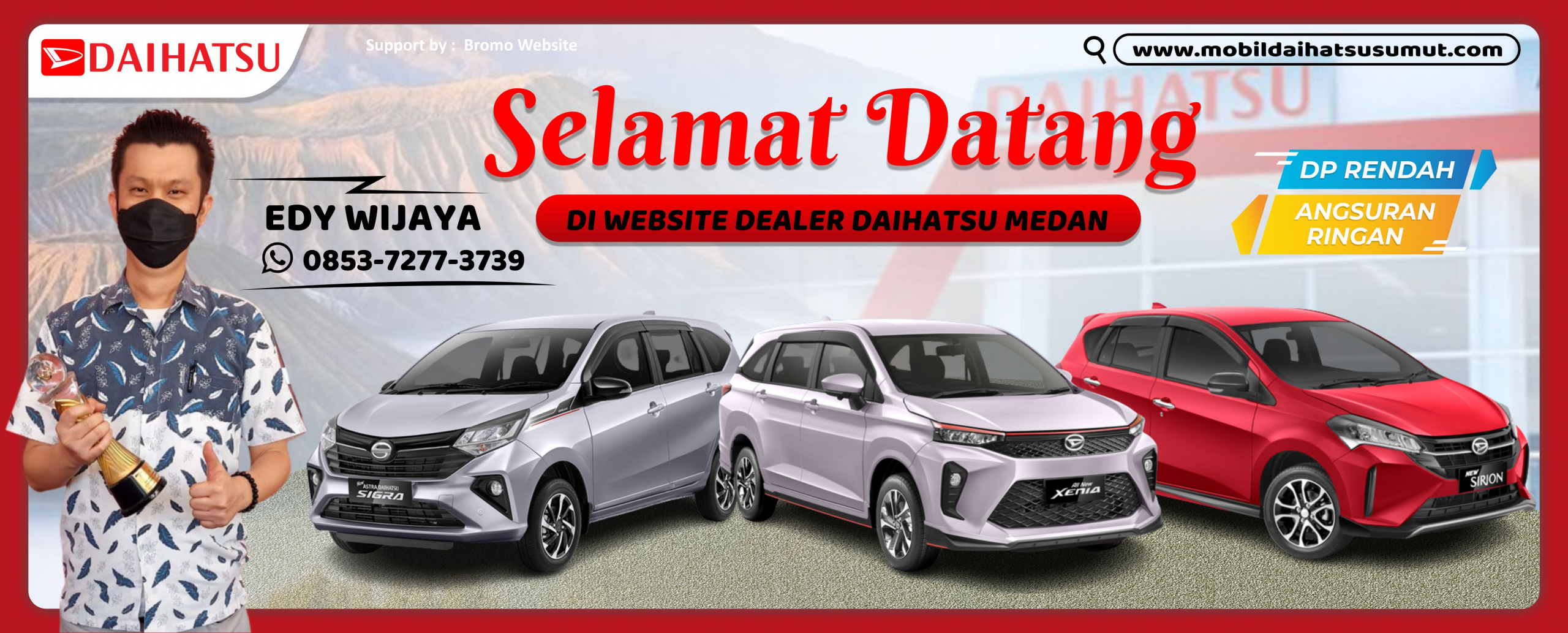 DAIHATSU MEDAN,- Perkenalkan nama saya Edy Wijaya Sales Executive di Dealer Resmi Daihatsu menawarkan pelayanan pembelian cash/kredit dengan Dp Rendah, Angsuran Ringan, serta Kualitas Pelayanan terbaik. Mau pesan mobil Daihatsu Class Passenger Car di Authorized Dealer Resmi PT. ASTRA INTERNATIONAL TBK DAIHATSU :